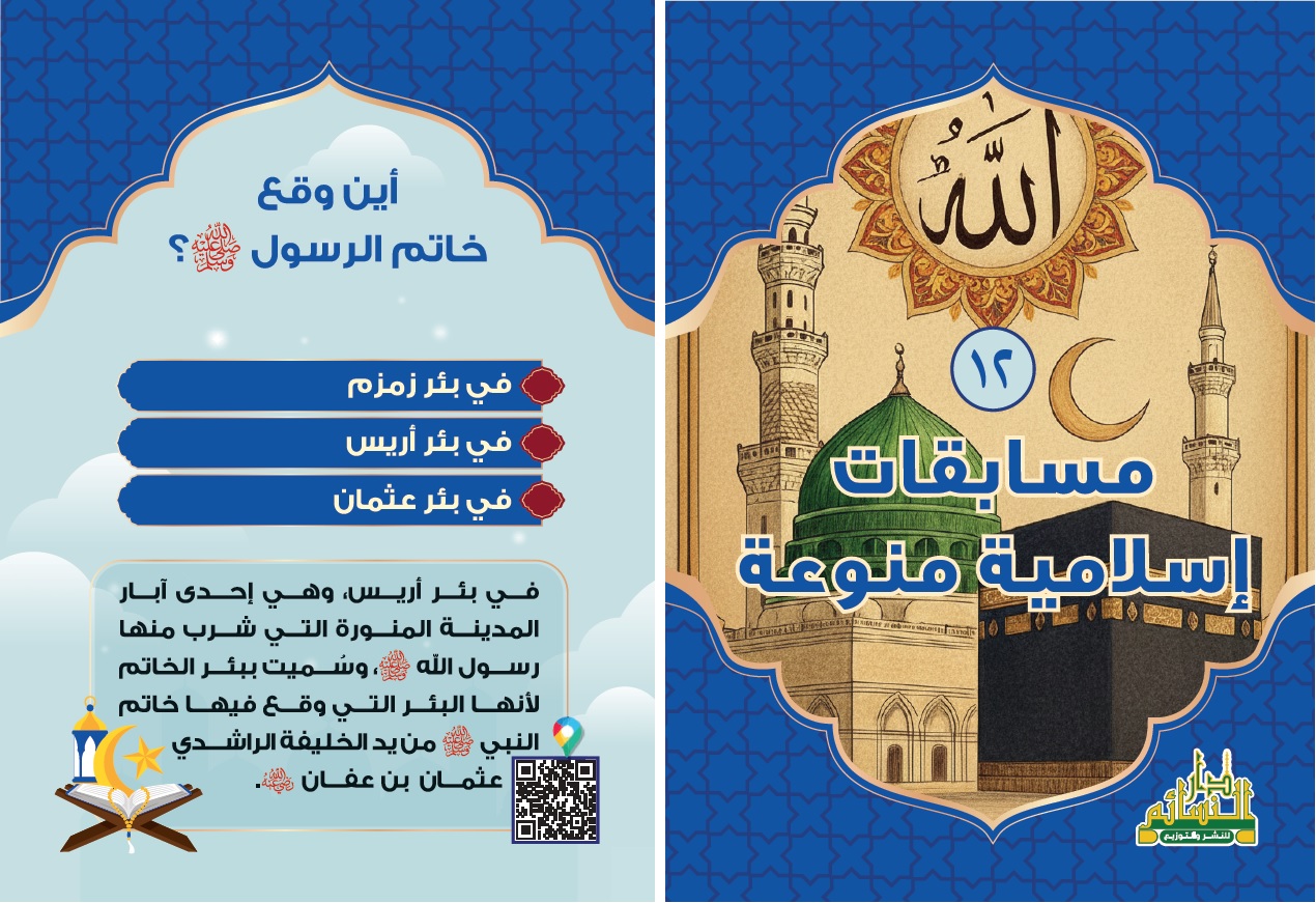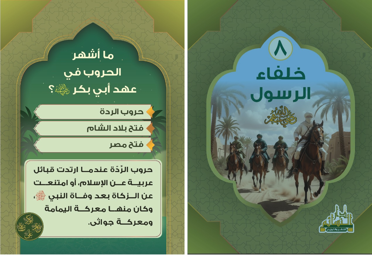 تحدي المعلومات أجمل المسابقات الإسلامية في كل بطاقة قصة وحكاية وفي كل سؤال سرّ من أسرار قصص وعلوم القرآن والرسل والأنبياء وأسرار السيرة النبوية ومعالمها التاريخية وقصص الصحابة والصحابيات وأمهات المؤمنين وتاريخ الخلفاء الراشدين والدول الإسلامية حيث الأحداث تتلاحق والبطولات تتسابق أسئلة شيّقة تكشف لك العِبر والعجائب تجعل التعلم مغامرة يحبها الصغار ويتنافس فيها الكبار خذ بطاقة وأعطني الأخرى ولنبدأ المنافسة لنصل للمعلومة