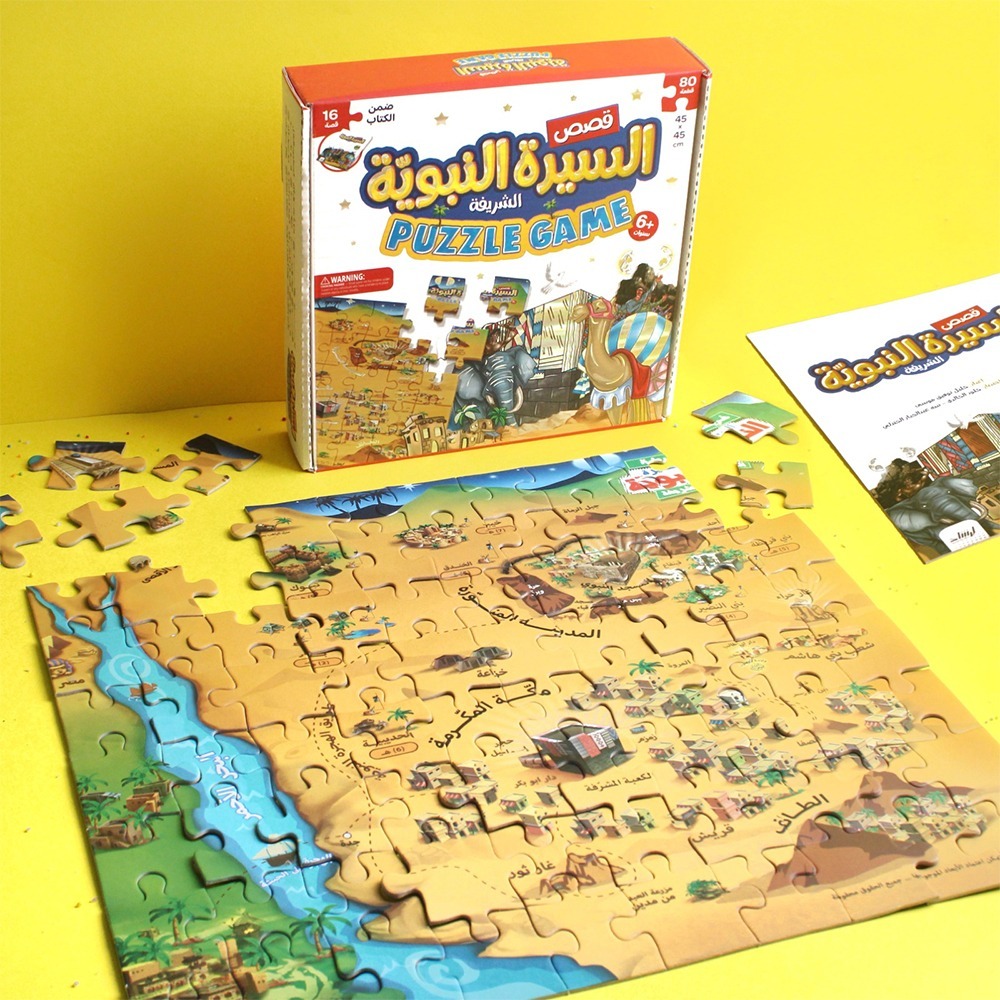 80 قطعة بازل مع كتيب به 16 قصة عن السيرة النبوية